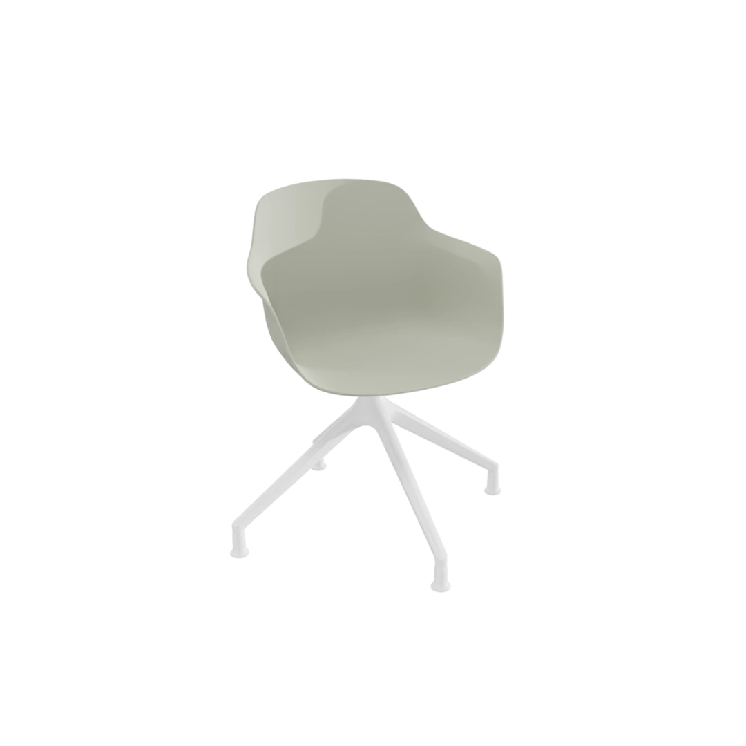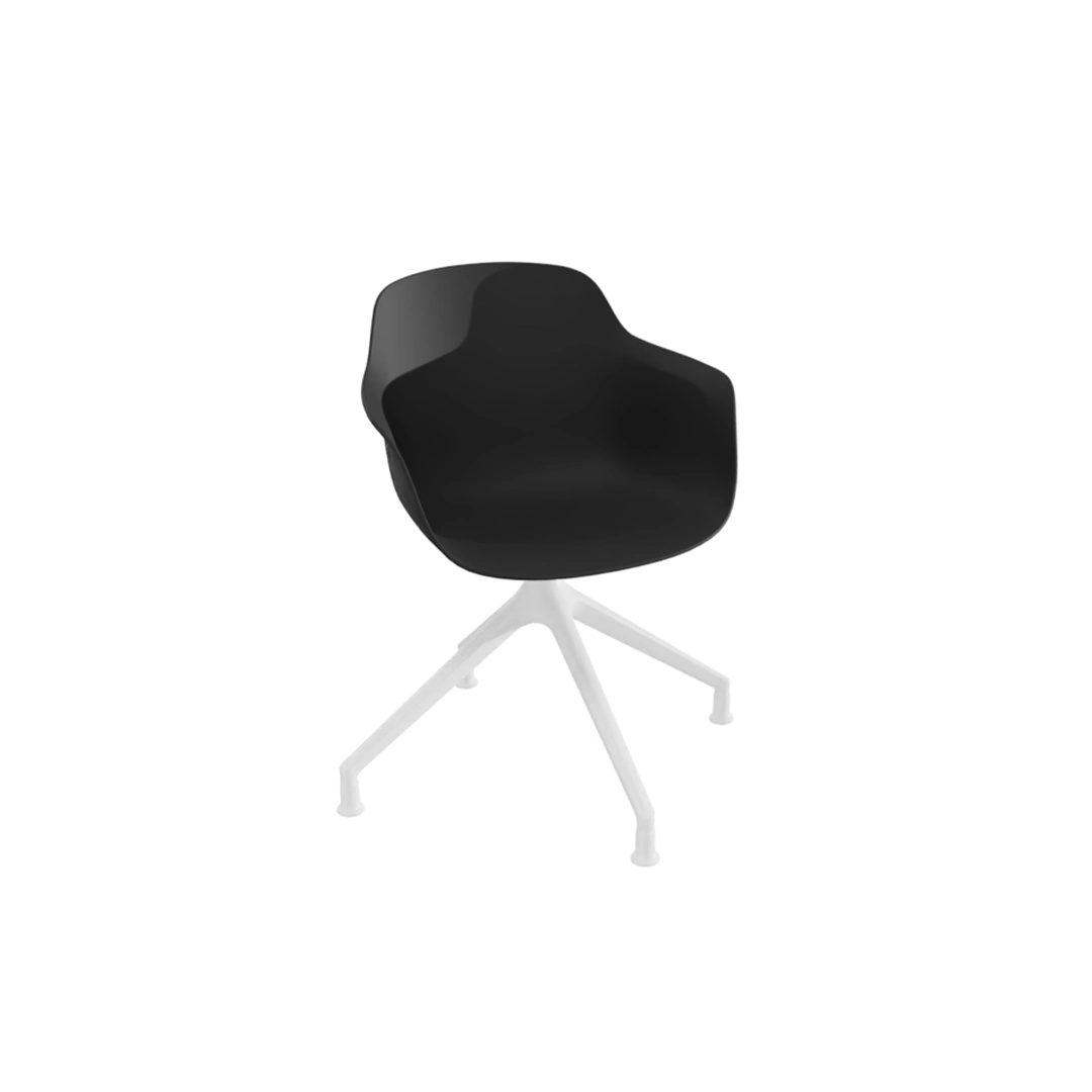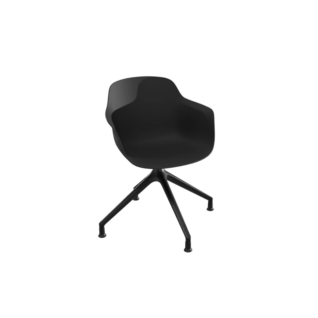 Le mécanisme giratoire offre de la fluidité et favorise les échanges et les mouvements latéraux. La chaise reste néanmoins stable grâce à son piétement en étoile et ses patins fixes.